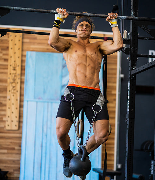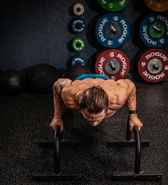 A proper push up ends when the chest and body touch the floor. But what if we could go through the floor with our hands fixed? Get more range of motion? That means an entire portion of our shoulder, chest and triceps would get trained. This can be accomplished with a variety of different tools. Parallettes, Dumbbells that don’t roll, Kettlebells that don’t tip, and two benches or boxes next to each other.